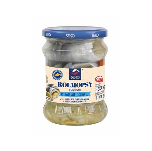 Rolmopsy to tradycyjna, polska przystawka, składająca się z marynowanych płatów śledzia, które są starannie zwijane i wypełnione pysznymi dodatkami, takimi jak ogórek, cebula czy papryka. Całość jest zanurzona w aromatycznej zalewie octowej, która podkreśla ich smak i nadaje im wyjątkowy charakter. Rolmopsy są idealnym dodatkiem do różnorodnych dań oraz stanowią znakomitą zakąskę na każdą okazję.. Cena za 1 sztukę